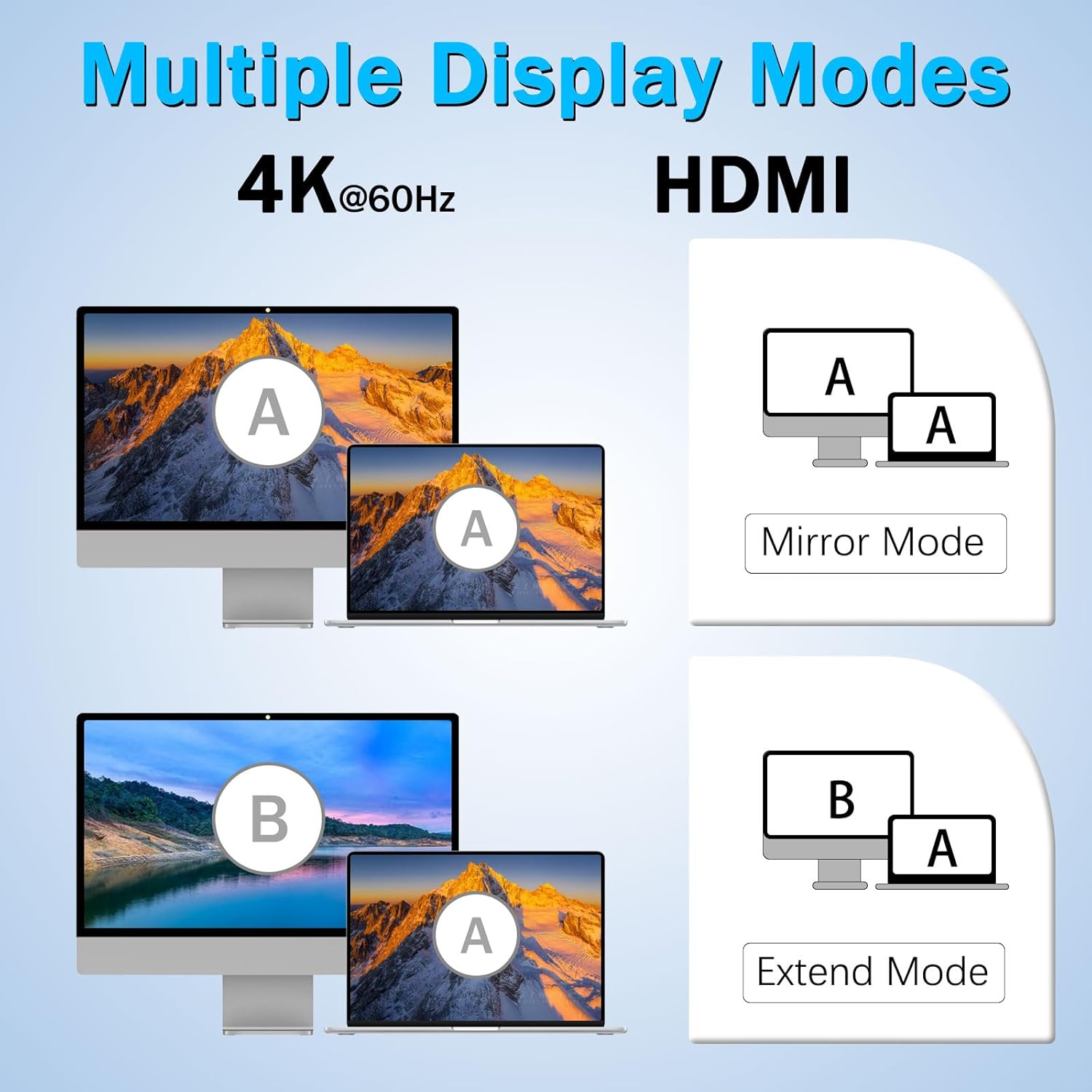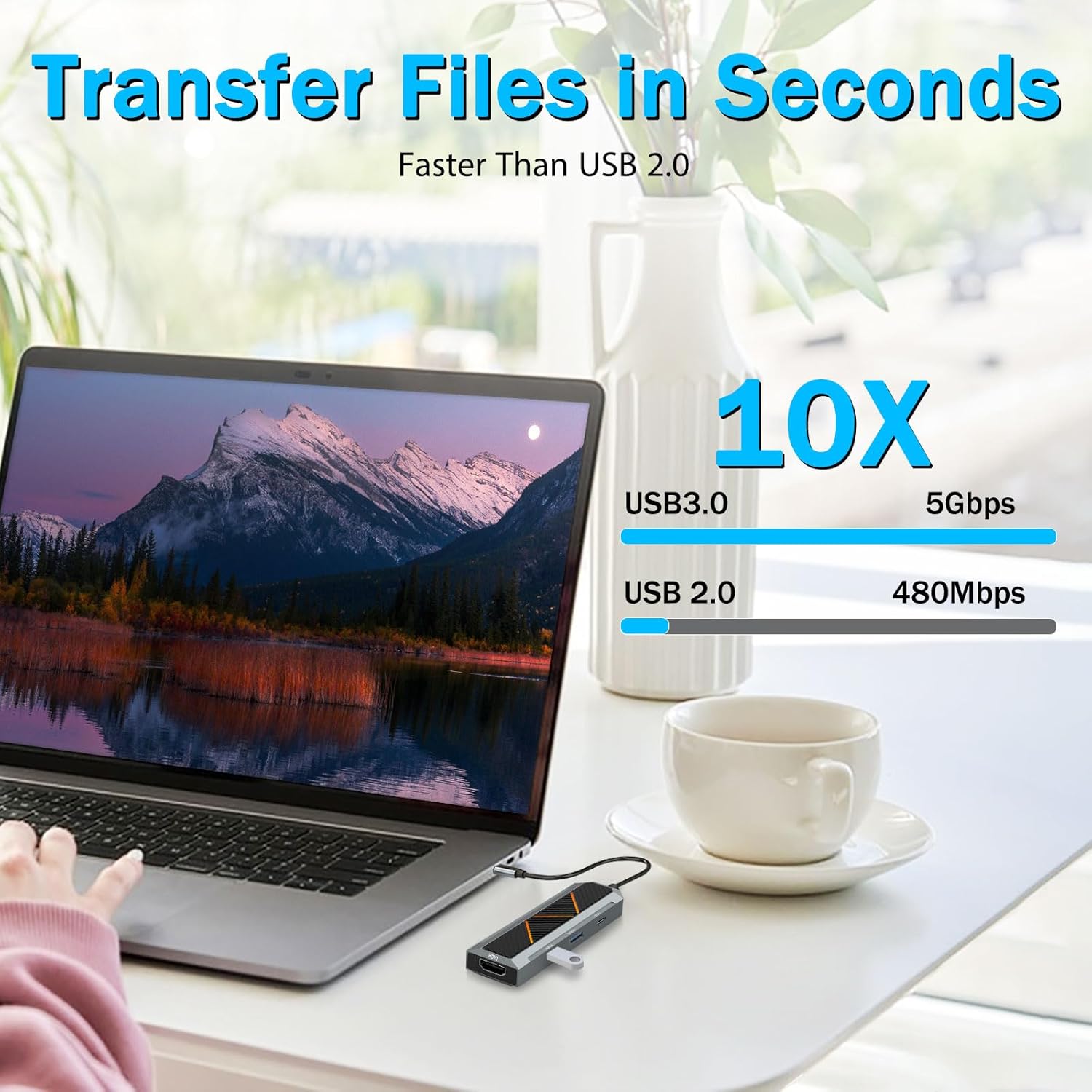 Una ex primis commodis 4-in-1 USB-C Hub cum 4K 60Hz HDMI Splitter est facultas liberandi summam solutionis video output. HDMI portus solutionem 4K in 60Hz sustinet, perspicuum visibilem et motum lenis praebens.