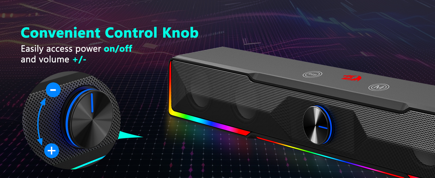 A key notam GS516 Bluetooth/USB Wired Connection Soundbar Volume Knob Computer Orator intuitive voluminis nodi temperantiae est. Haec physica dial permittit utentes ut celeriter accommodent gradus audio sine programmatis occasus navigandi.
