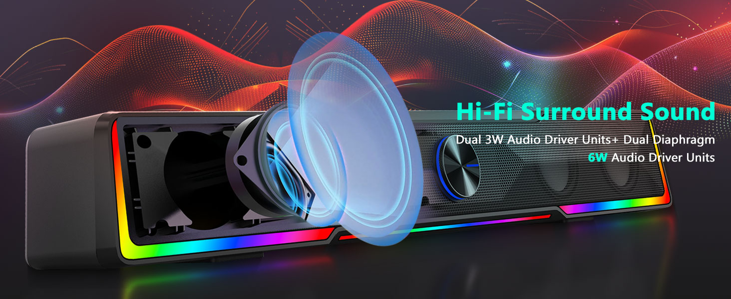 Key Features of the Black GS516 Bluetooth/USB Wired Connection Soundbar Volume Knob Computer Speaker