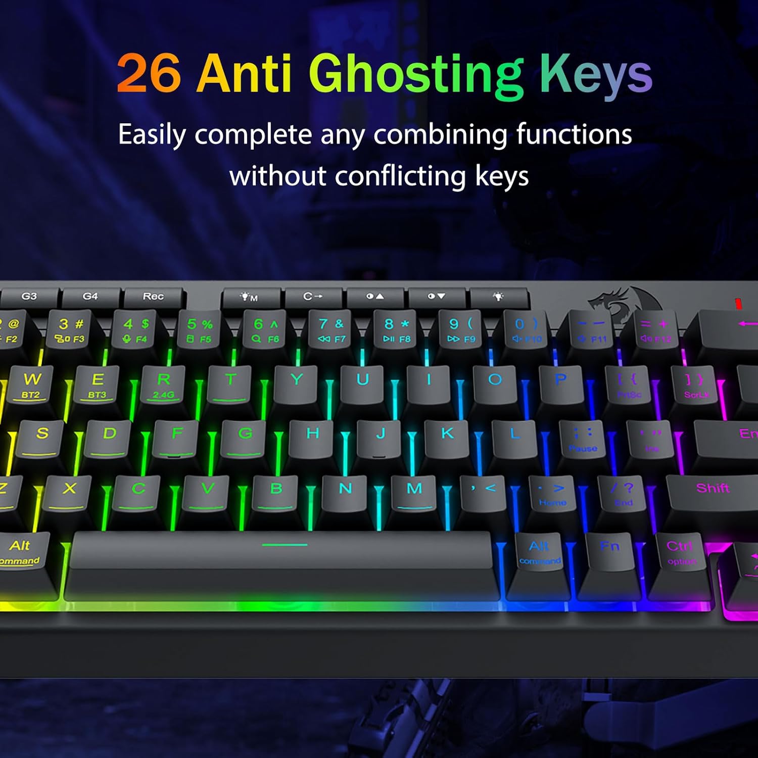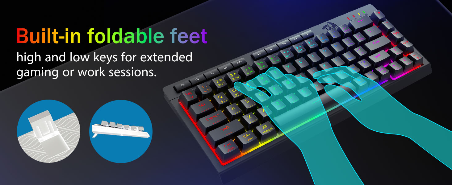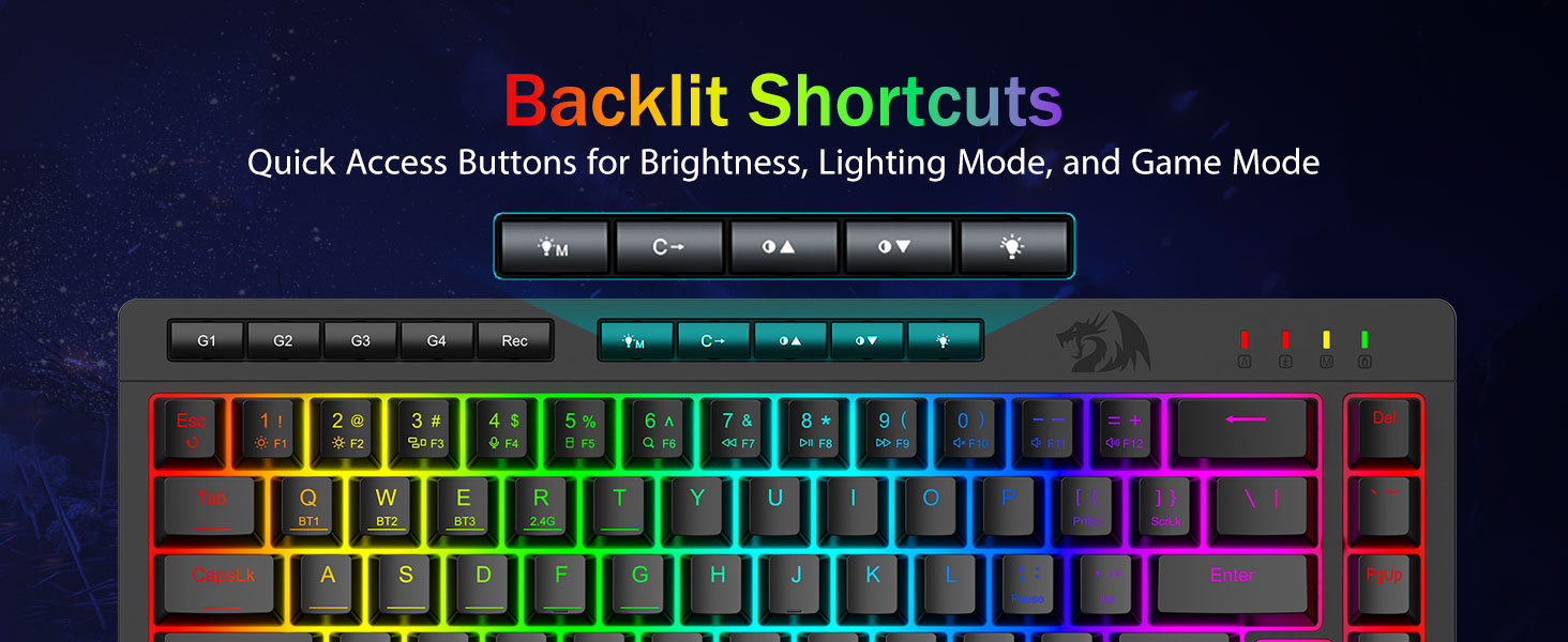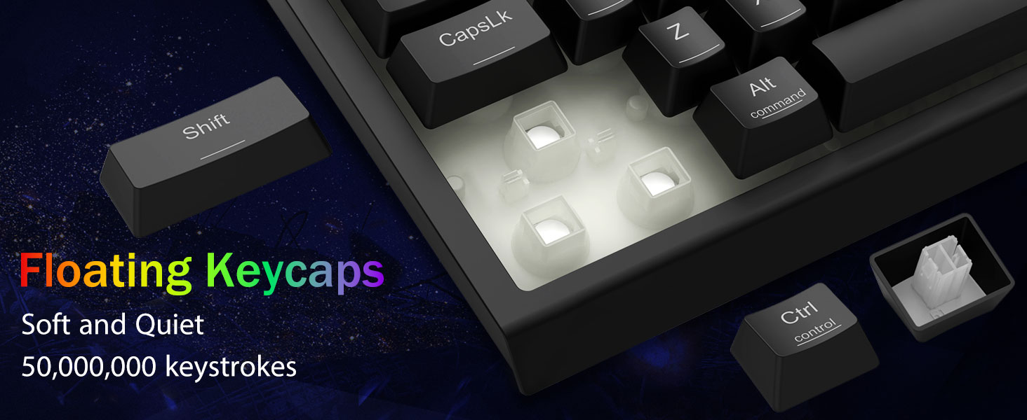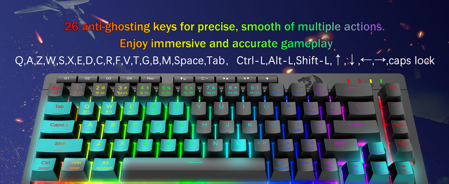 Immersive RGB Lighting & customizable Ambiance -Emitte 16.8 decies centena RGB colores cum modis 8 preset (Rainbow Wave, Typing Reactivum) + 6 DIY perfiles. Adjust splendorem e vibrante ardore ad modum furtim - specimen pro nuper-nocte ludo vel officio usus.