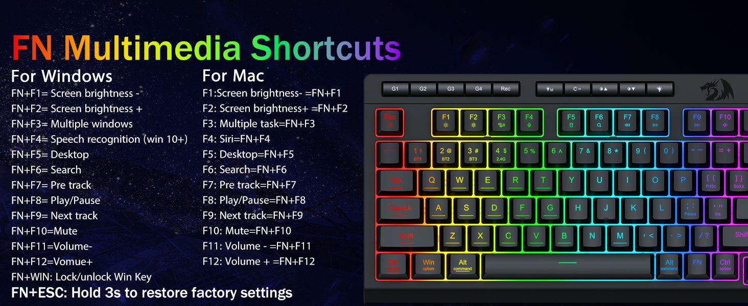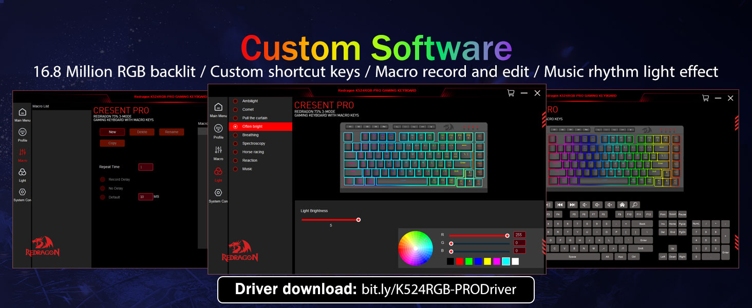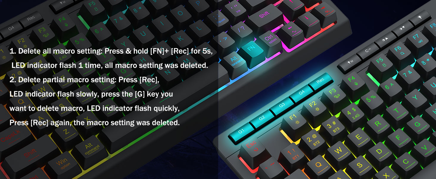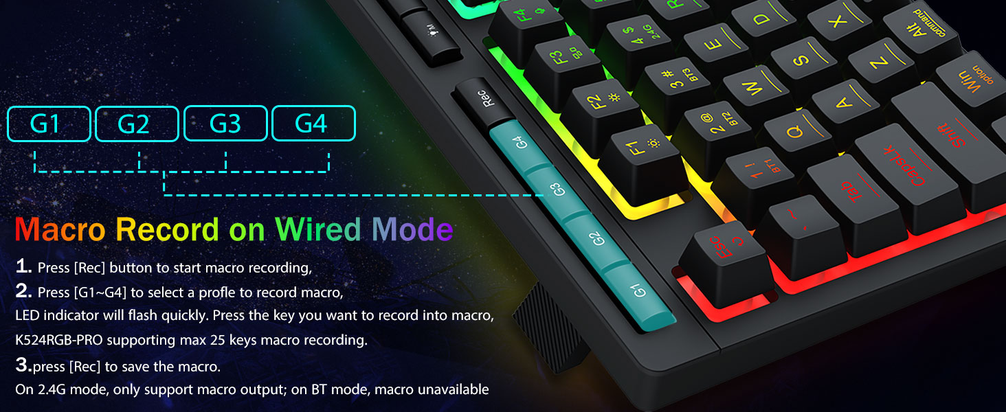 Vestibulum Macros, sine viribus Imperium- Programma in 4 clavibus tortoribus (G1-G4) statim - nulla programmata requiritur. Combos combos memorare pro ludum, compendia pro fructibus, vel instrumentorum mandatorum. Redefine tua workflow in secundis. Utere etiam programmate ad functiones customizandas, macras crea, ac lumina RGB compone, et breves pone.