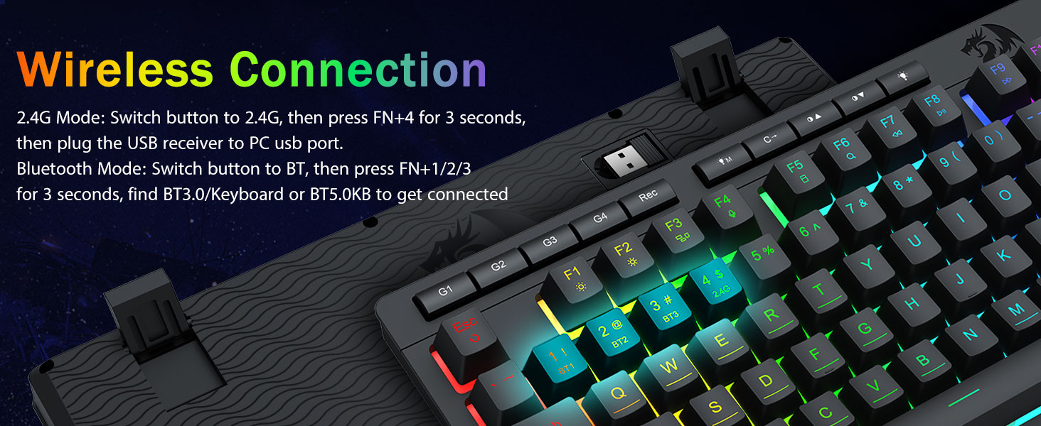 Sine labore toggle cogitationes per breves claves vel partem conjunctionem-perfectam ad opus hybrid / ludum setups. Manete powered for hebdomades cum pugna 4,000mAh (30+ dierum standby, 50hrs RGB runtime).