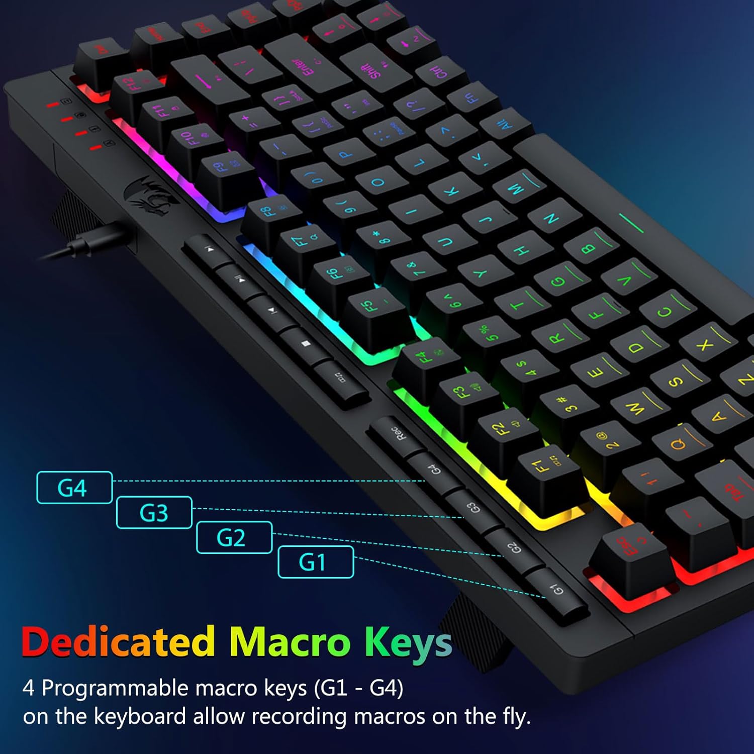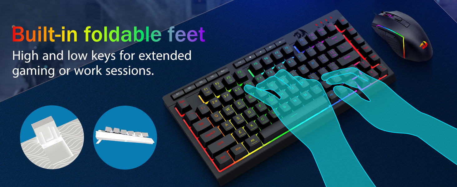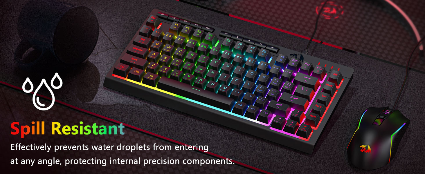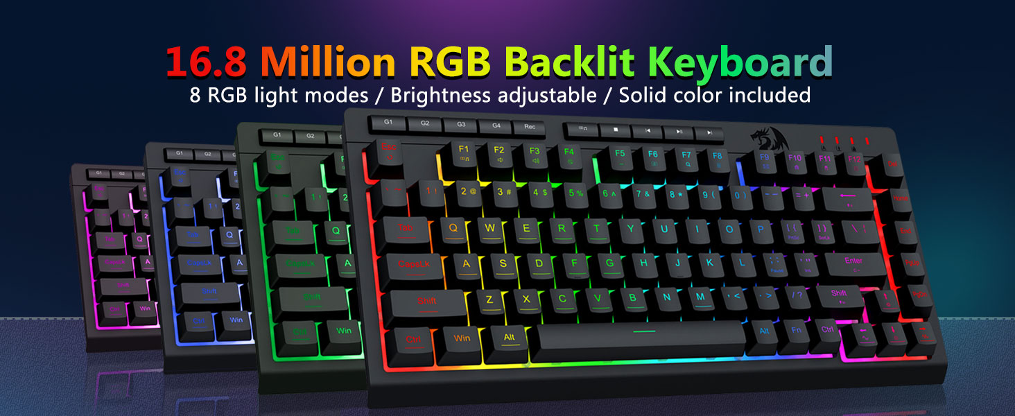 RGB Forum Cantiones et Mus】Ludus claviaturae habet 8 RGB deponens modos eligendi e & mus aleatorio VIII effectus accendendi ad commutandum inter, et claviaturae componi possunt pro 4 gradu celeritatis et splendoris ad arbitrium tuum preference. Claves capsulae clarum praebent uniformem backlight. Utrum copia una sit lux, effectus levis mutans vel nulla lux, Redragon claviaturae tincidunt et mus tuis necessitatibus occurrent!