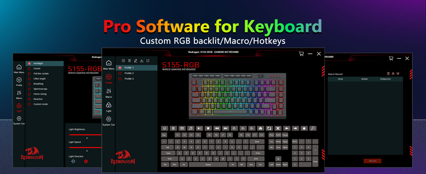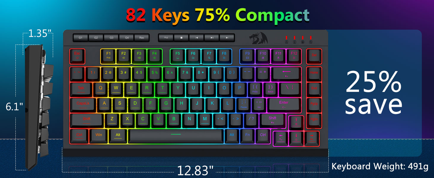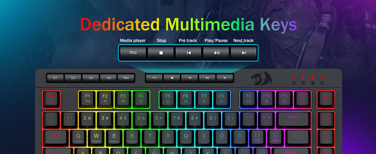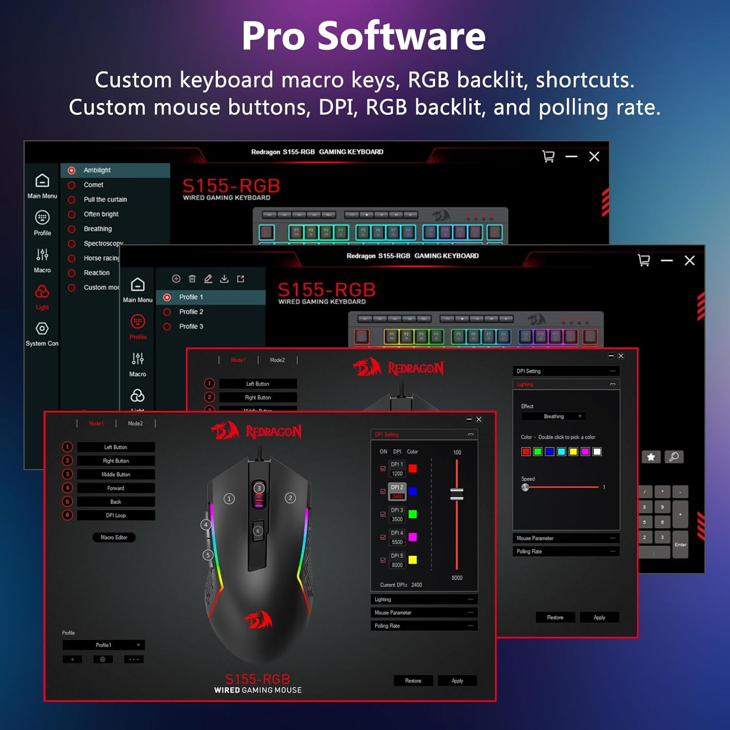 RGB Forum Cantiones et Mus】Ludus claviaturae habet 8 RGB deponens modos eligendi e & mus aleatorio VIII effectus accendendi ad commutandum inter, et claviaturae componi possunt pro 4 gradu celeritatis et splendoris ad arbitrium tuum preference. Claves capsulae clarum praebent uniformem backlight. Utrum copia una sit lux, effectus levis mutans vel nulla lux, Redragon claviaturae tincidunt et mus tuis necessitatibus occurrent!