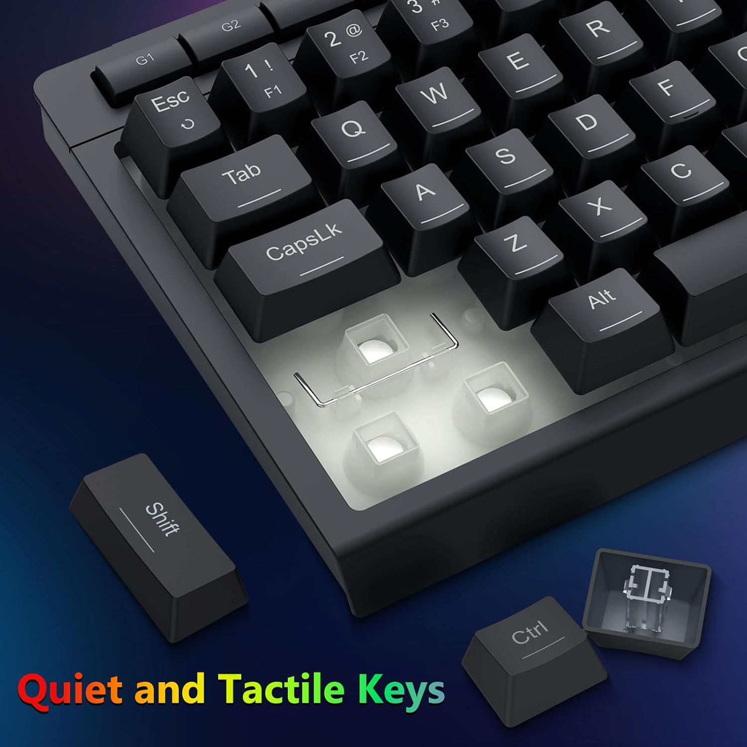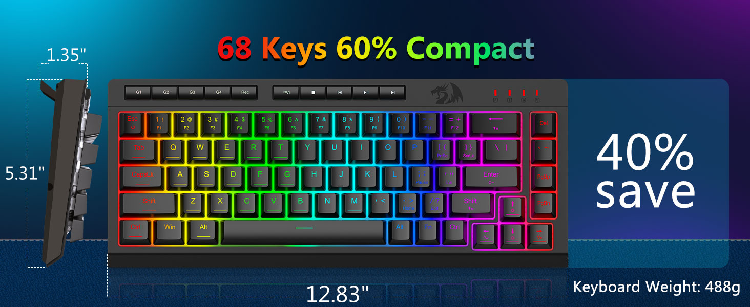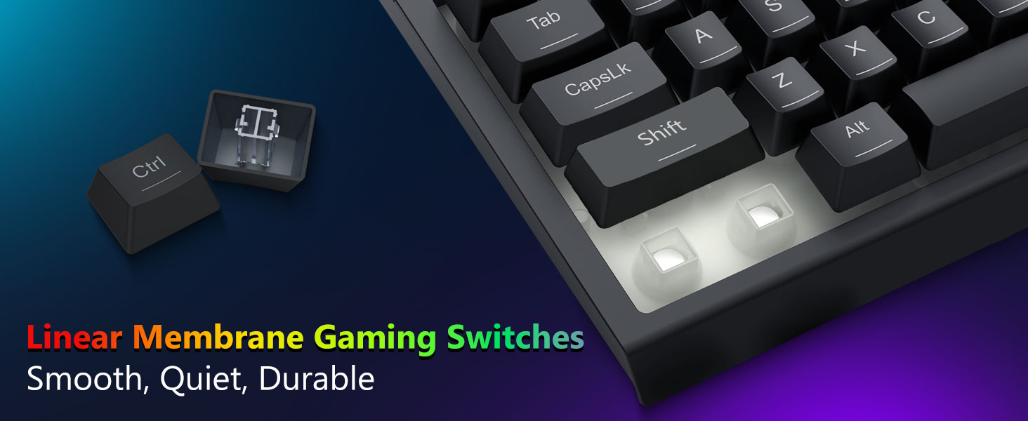 Integrated RGB illuminans meliorem key visibilem in ambitibus obscuris. Ratio illustrandi plures modos praebet, utentes utentes claritatem et effectus secundum eorum optiones componant.