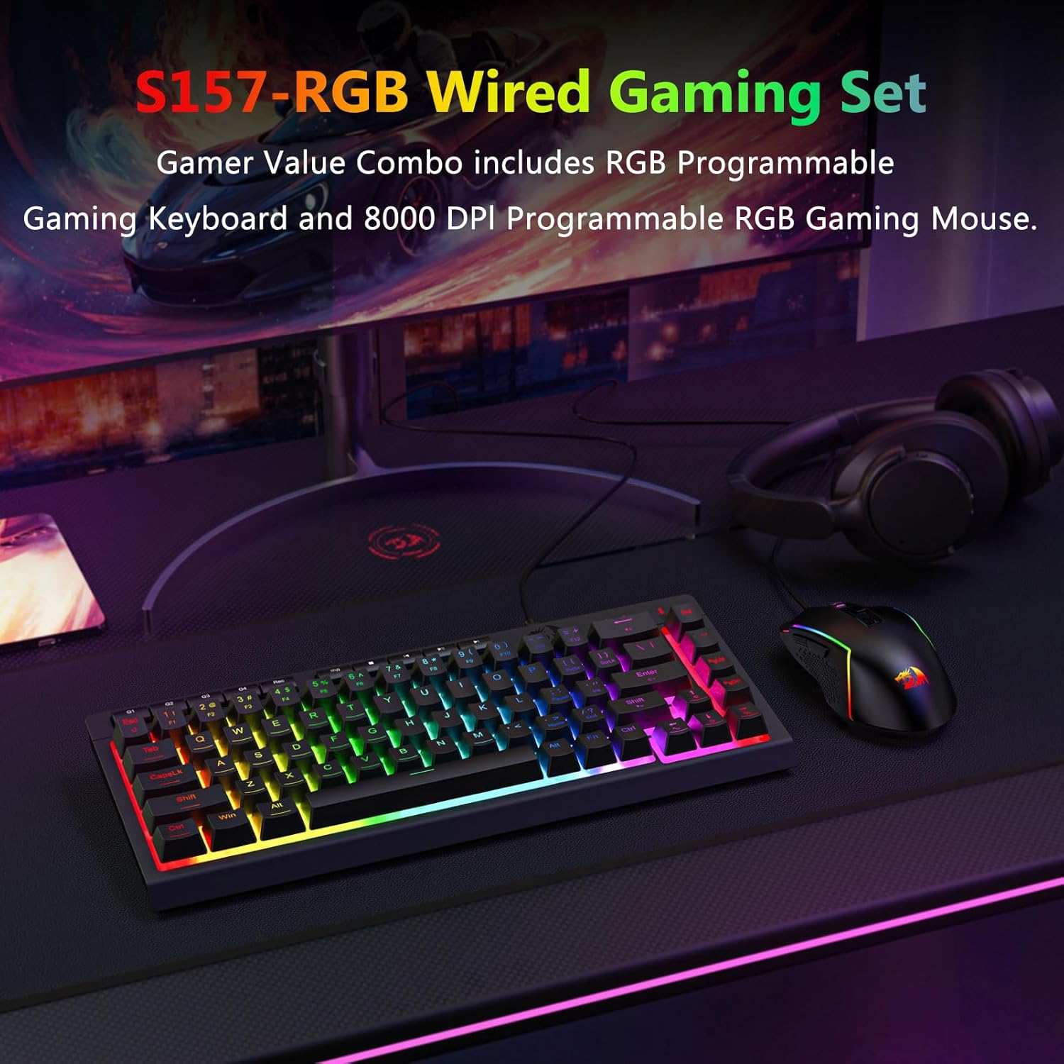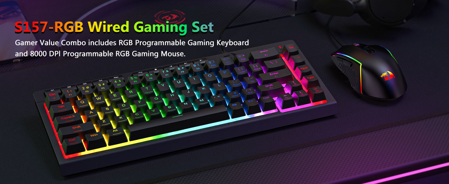 Niger S157 RGB Backlit Wired Gaming Cantiones et Mus Combo praebet compositionem practicam executionis, firmitatis, et usabilitatis. Eius plena magnitudinis claviaturae, mus responsivae, nexus filo firmo firmus aptam facit ad opera computanda tam ludi quam cotidiana.