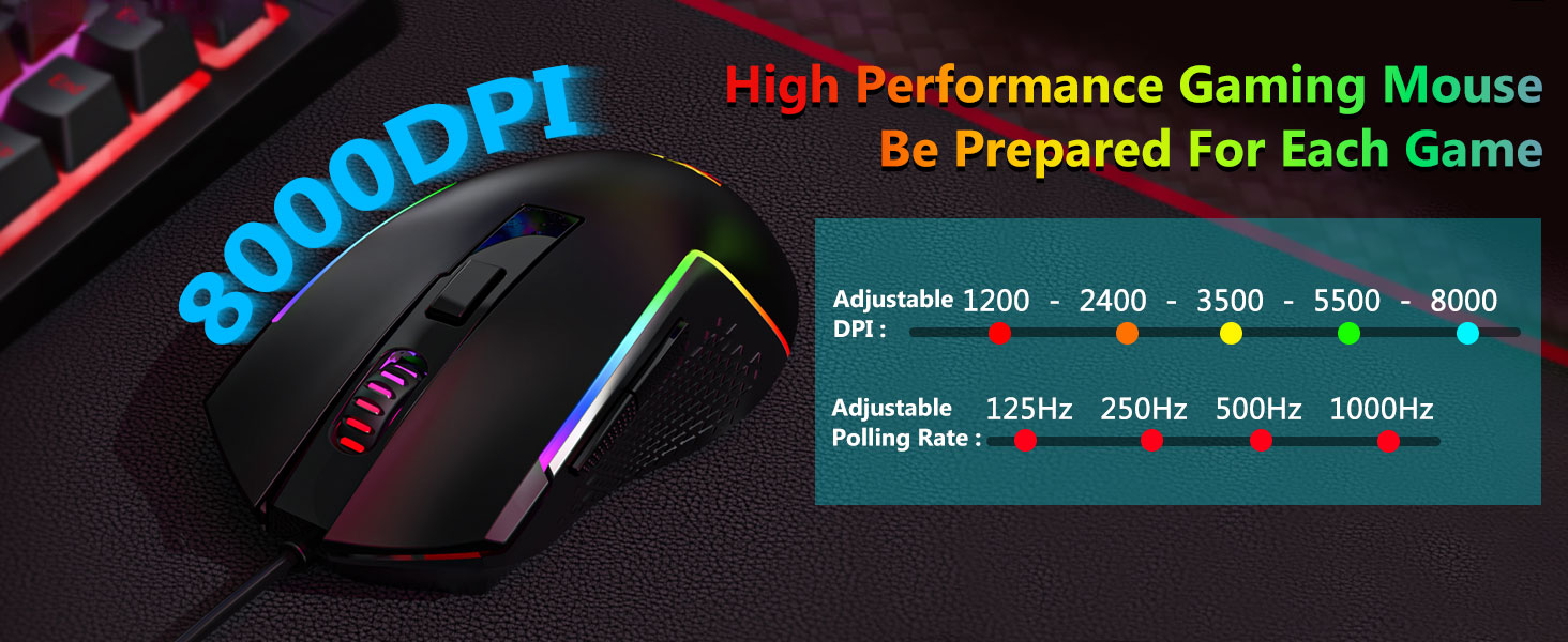 Mus inclusus cum sensori optico instructus est qui stabilis vestigia et motus cursoris lenis sustinet. Novifacta DPI occasus sinit utentes ad sensum cum diversis officiis aequare.