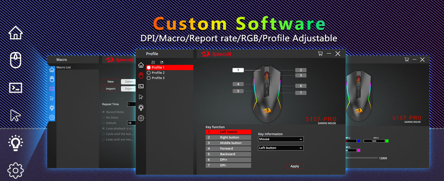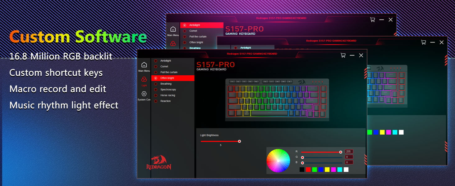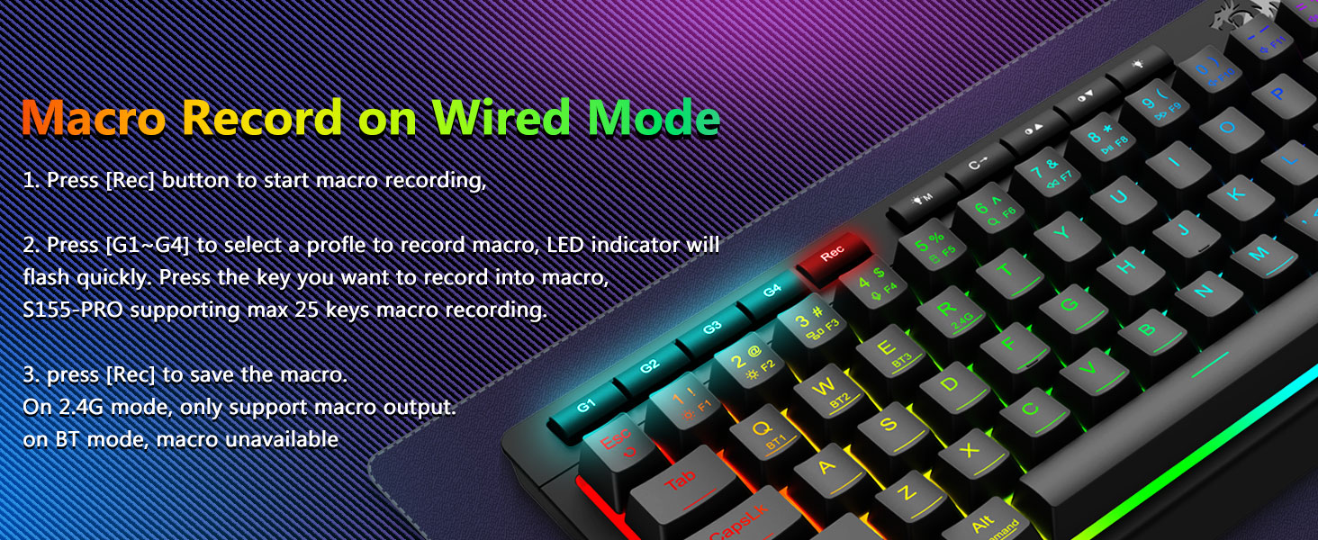 Vestibulum Macros Dedicavit Backlit Imperium- Programma in 4 clavibus tortoribus (G1-G4) statim - nulla programmata requiritur. Combos combos memorare pro ludum, compendia pro fructibus, vel instrumentorum mandatorum. Redefine tua workflow in secundis. Utere etiam programmate ad functiones customizandas, macras crea, ac lumina RGB compone, et breves pone. Aliquam clavium anti-spirituum (clavium cum underscore) quae permittunt 26 claves ad operandum simul ad ieiunandum et accuratum de respondendo venationis modum quem intendisti. Velox Access Puga pro splendore, Modus accendi, et Ludus Modus ut cito accommodare splendorem, profiles accendere, et modum lusum cum tactu globuli efficere.