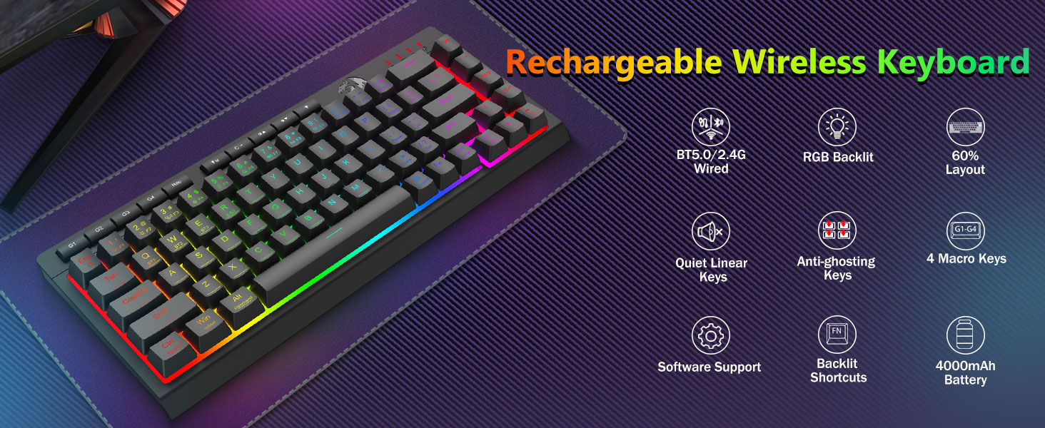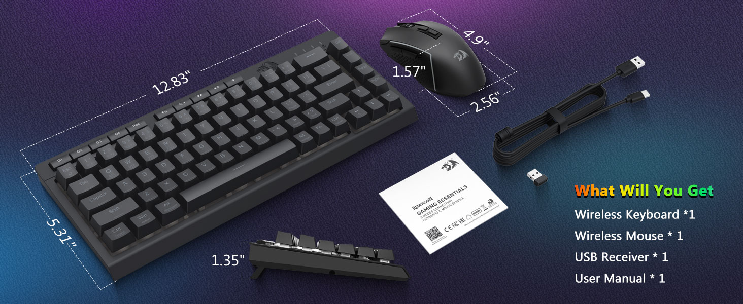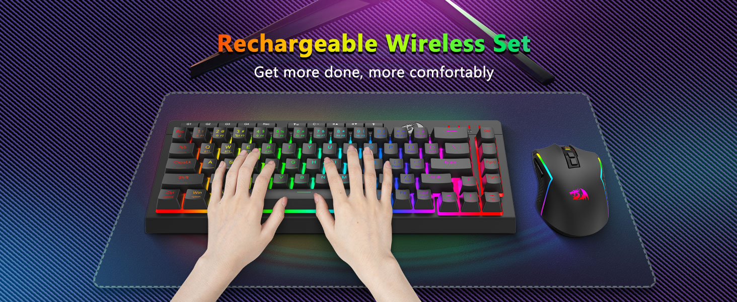 Black S157 Wireless Gaming Cantiones et Muris Combo a Redragon, perite fabricatum a fabrica professionali Chuangquan, destinatur ad elevandum stationem tuam gaming tam in actione et stilo. Clavia responsionis satisfacientem praebet, specimen utriusque ludi marathones ac sessiones typing extensae, dum mus accurationem cum suis commodis DPI occasus pro superiorum ludorum potestate efficit. Utraque pars instructa est ad captandam RGB backlighting, sino te ad domicilii tui ambientiam habeatis cum spectro colorum et effectibus dynamicis.