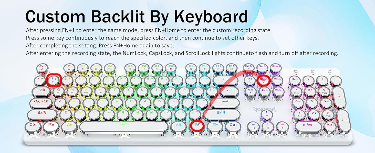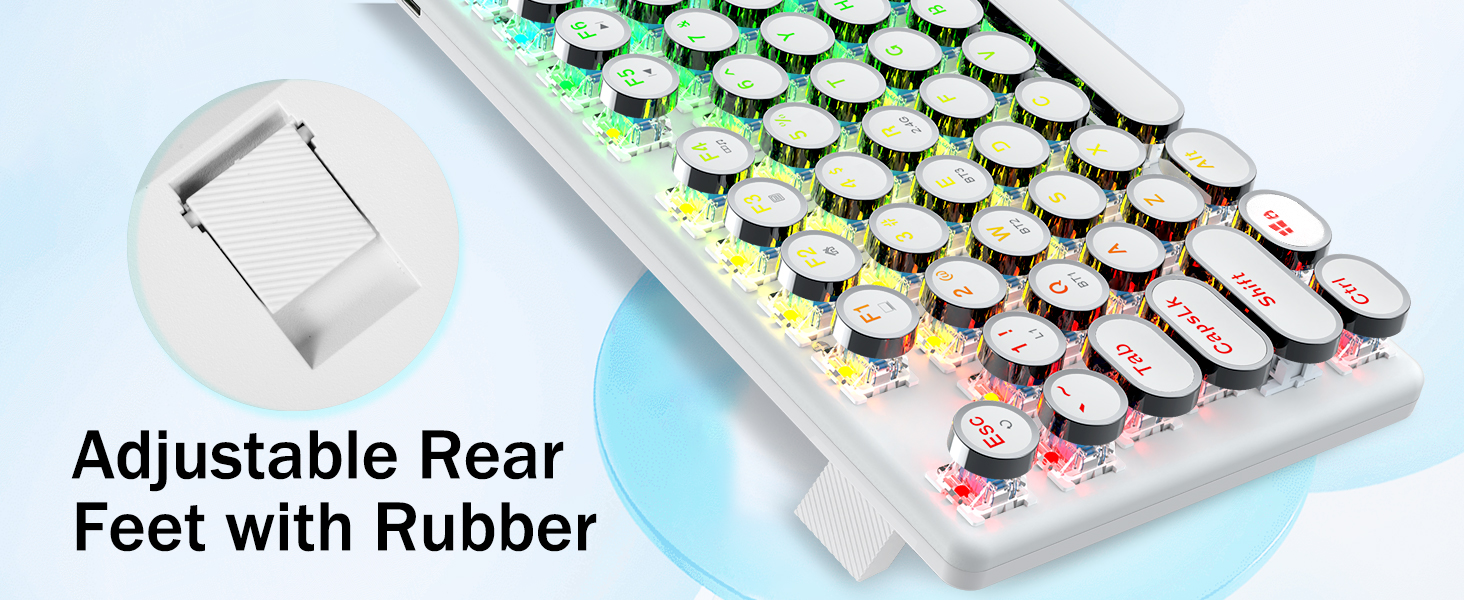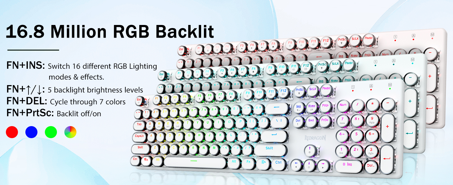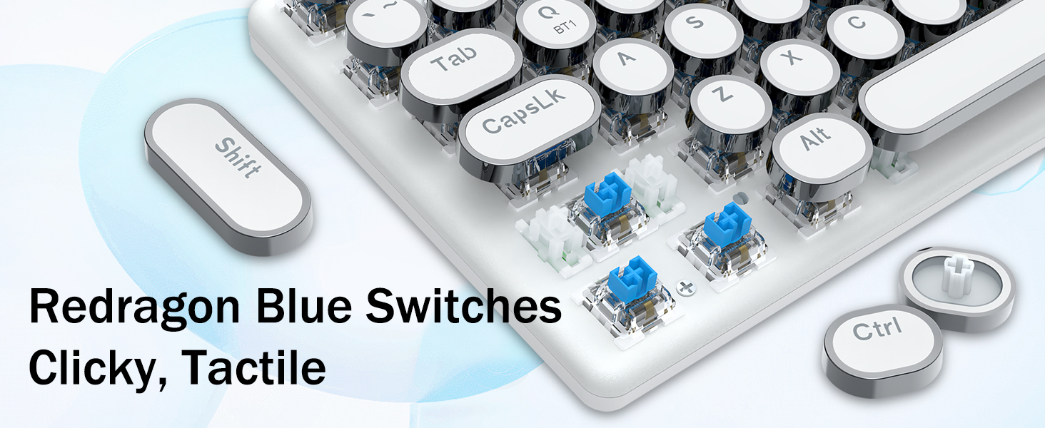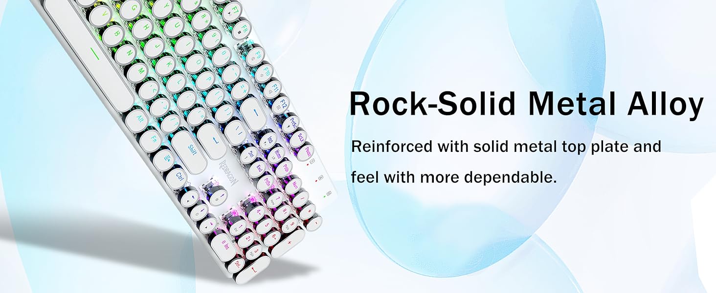 𝗥𝗲𝘁𝗿𝗼 𝗧𝘆𝗽𝗲𝘄𝗿𝗶𝘁𝗲𝗿 𝗦𝘁𝘆𝗹𝗲 𝘄𝗶𝘁𝗵 𝗠𝗲𝗰𝗵𝗮𝗻𝗶𝗰𝗮𝗹 𝗞𝗲𝘆𝘀- Redragon Mechanica caeruleae virgas medias resistentias praebent, strepita sonorum & tangentium responsiones audibiles, commodas et certas ludi ambitus et effectus praebet. Vindemiatio steampunk claviaturae rotundi keycaps similis est classico scriptori, adfert te commodus typing affectum & stabilis clicking tactus.