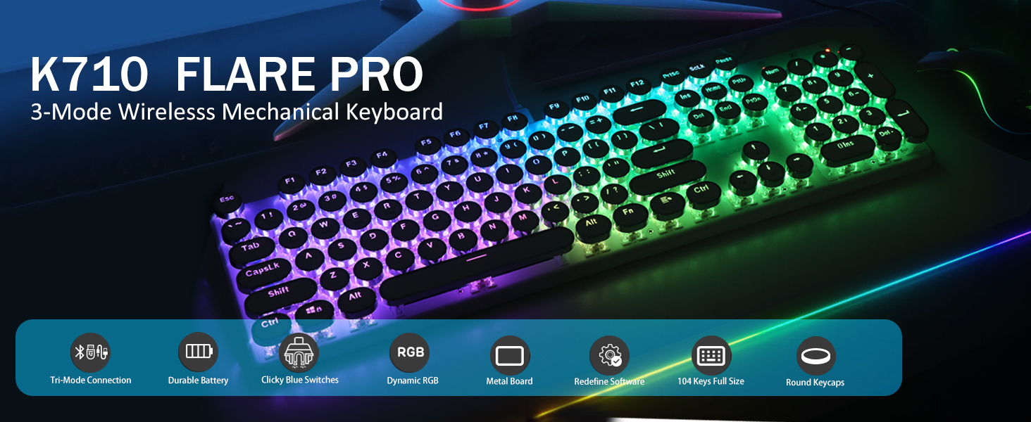 &- Upgraded FLAM PRO versione eadem materia metallica solida utens servat. claviaturae constantem et elegantem in scrinio habe, ob experientiam typing premium. Clavis claviaturae K710 technologiae 104-clavis anti-surantis technologiae, plures claves simul sine conflictu urgeri permittit.