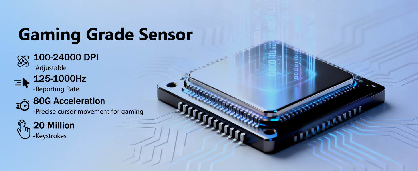 Mus cum sensori optico provecto instructus est qui ad 24.000 DPI attingit. Hoc permittit utentes ut sensus accommodare pro diversis missionibus, ab exactis nisi in ludis ad motum cursorem celeriter per magnas tegumenta disponere.