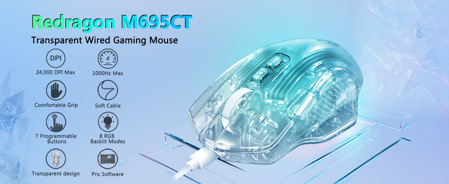 Albus M695CT 24,000 DPI 8 RGB DUCTUS Backlit Modus Wired Mus Gaming aequabilem compositionem praecisionem, firmitatem et usabilitatem praebet. Summus eius effectus sensorem, sensitivum aptabile, et ergonomicum consilium, aptam reddunt tam ludi quam cotidianae operae.